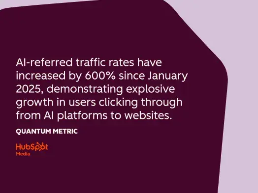 13. AI-referred traffic rates have increased by 600% since January 2025, demonstrating explosive growth in users clicking through from AI platforms to websites.