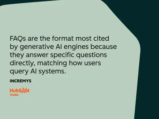 21. FAQs are the format most cited by generative AI engines because they answer specific questions directly, matching how users query AI systems.