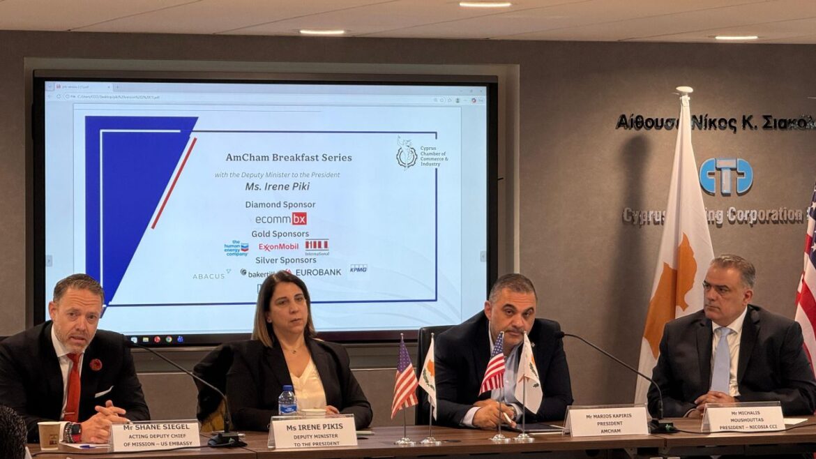 The American Chamber of Commerce in Cyprus (AmCham Cyprus) on Thursday announced that it held a strategic dialogue with Deputy Minister to the President Irene Piki, focusing on key economic and business priorities.