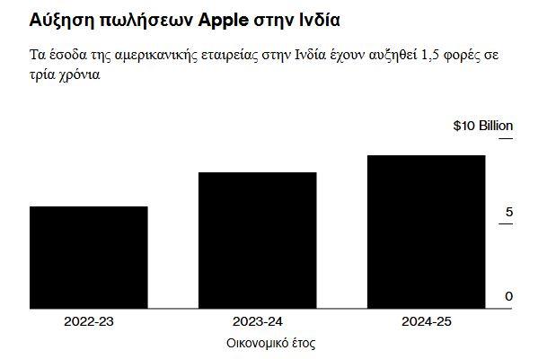 Οι ετήσιες πωλήσεις της Apple στην Ινδία έφτασαν στο επίπεδο ρεκόρ των σχεδόν 9 δισεκατομμυρίων δολαρίων το τελευταίο οικονομικό έτος, σηματοδοτώντας την αυξανόμενη καταναλωτική ζήτηση για τις ναυαρχίδες της, καθώς η εταιρεία ενισχύει το αποτύπωμα λιανικής της στην πιο πυκνοκατοικημένη χώρα του κόσμου.